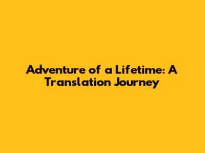 Adventure Of A Lifetime: A Translation Journey