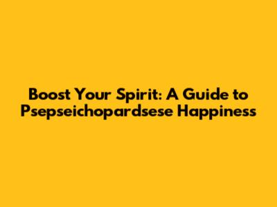 Boost Your Spirit: A Guide To Psepseichopardsese Happiness