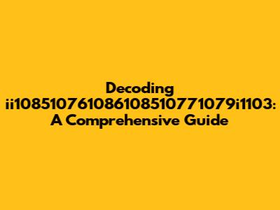 Decoding Ii108510761086108510771079i1103: A Comprehensive Guide