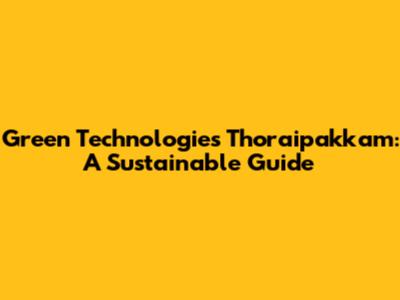 Green Technologies Thoraipakkam: A Sustainable Guide