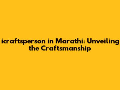Icraftsperson In Marathi: Unveiling The Craftsmanship