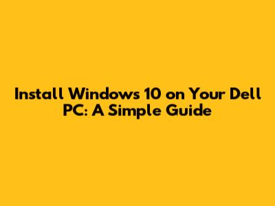 Install Windows 10 On Dell PC: A Simple Guide