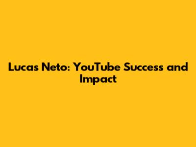 Lucas Neto: YouTube Success And Impact