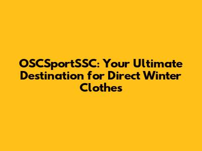 OSCSportSSC: Your Go-To For Winter Clothes
