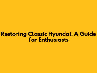 Restoring Classic Hyundai: A Guide For Enthusiasts