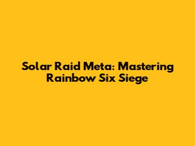 Solar Raid Meta: Mastering Rainbow Six Siege