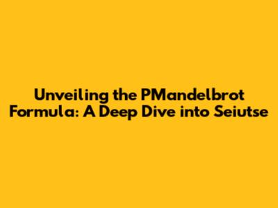 Unlocking The Secrets Of The PMandelbrot Formula For Seiutse