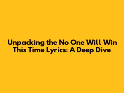 Unpacking The 'No One Will Win This Time' Lyrics: A Deep Dive
